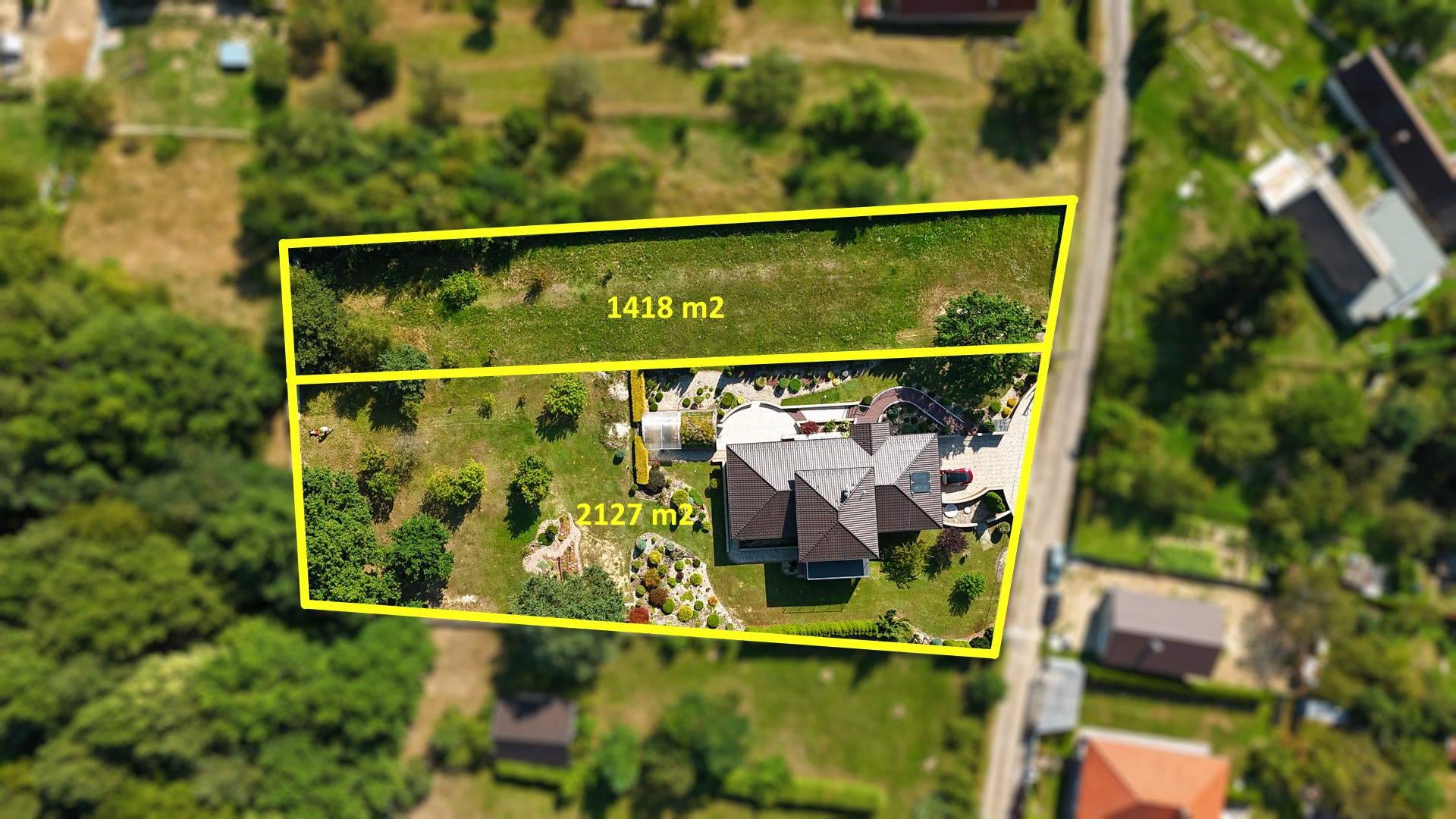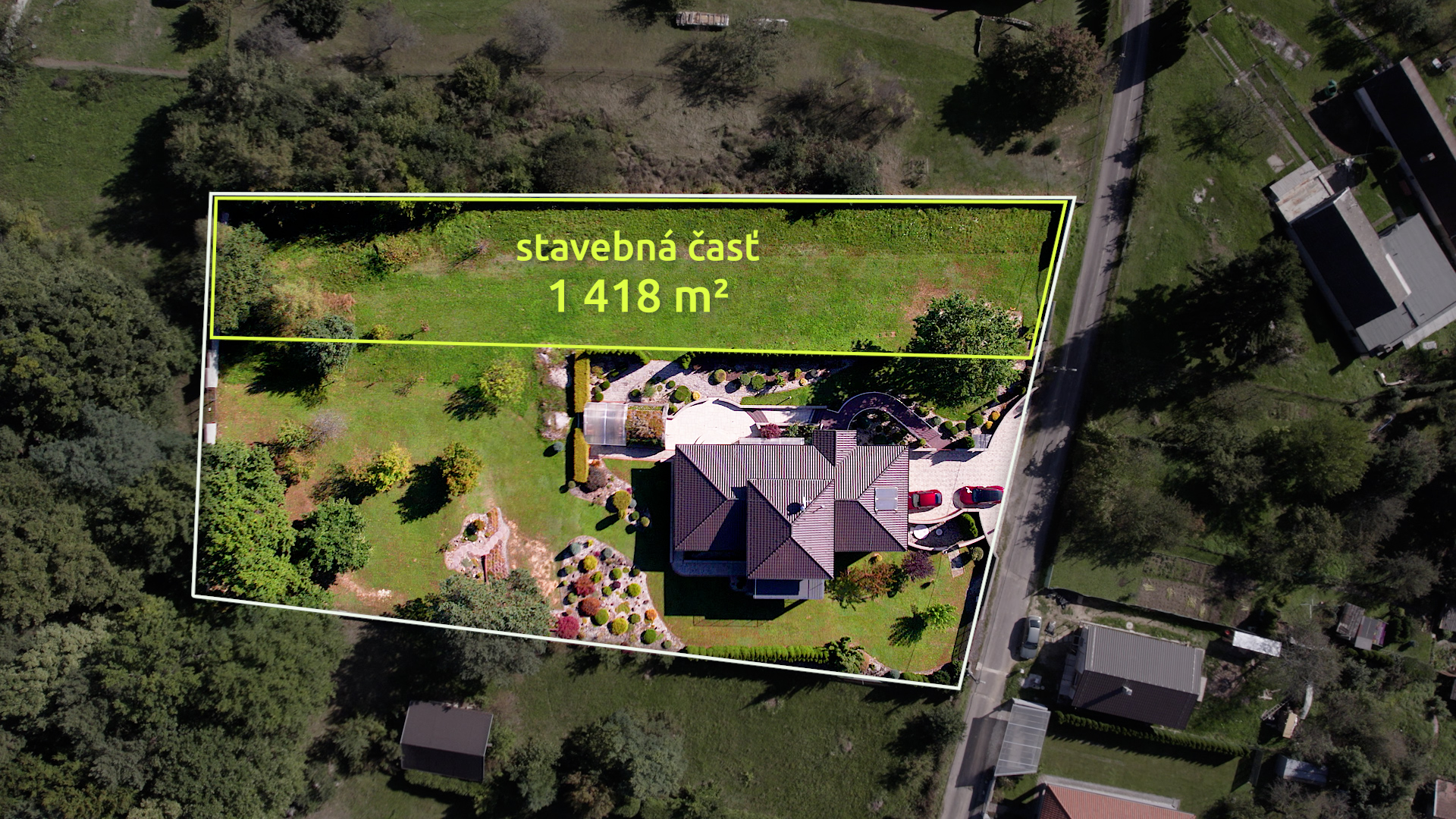 - Veľký pozemok 3 545 m² s možnosťou oddelenia stavebnej parcely