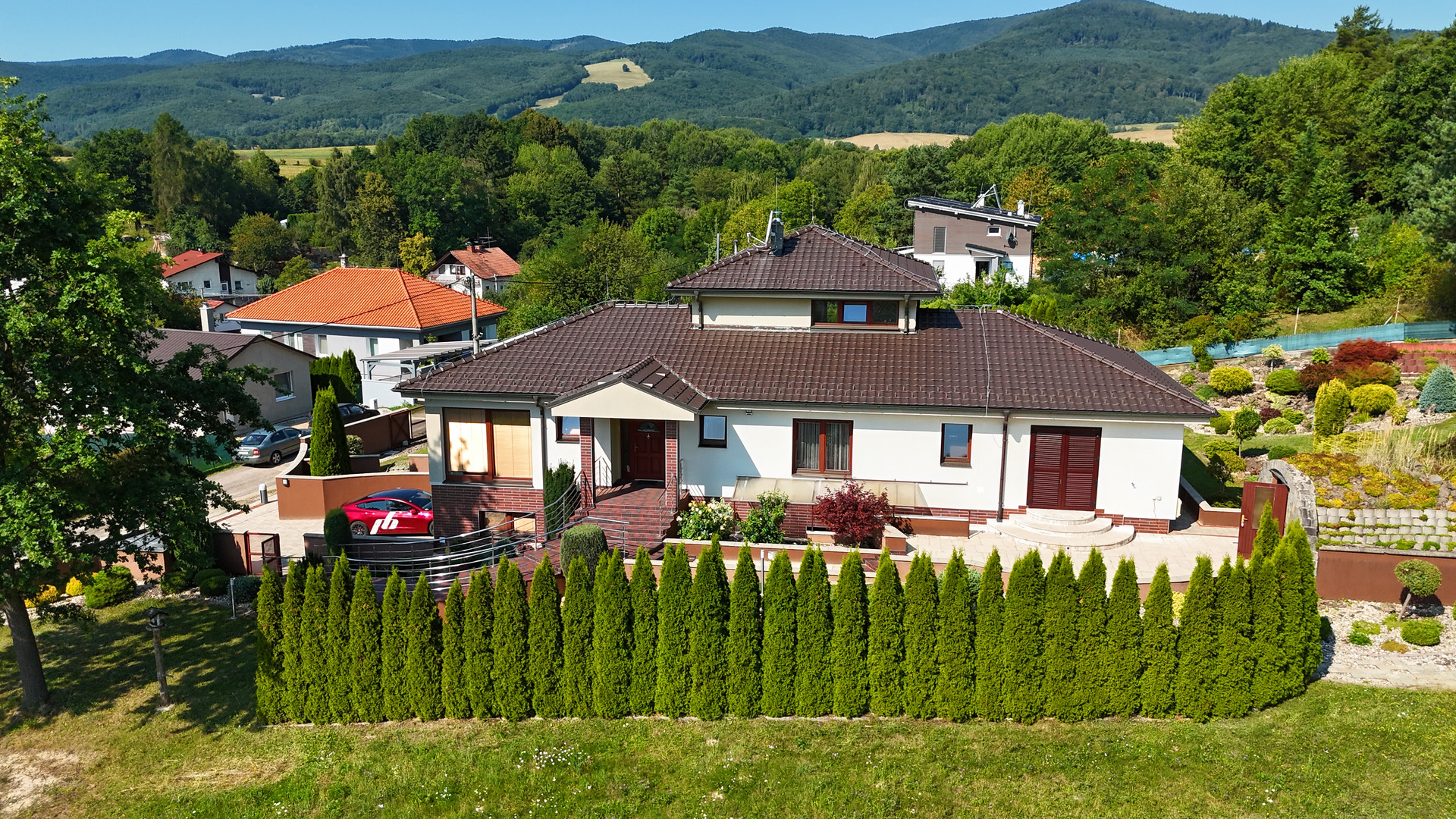 Vila disponuje šiestimi izbami a veľkorysým priestorom s úžitkovou plochou 250 m² na pozemku o rozlohe 3 545 m².