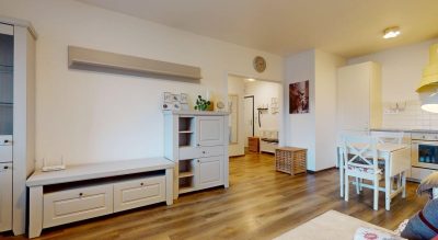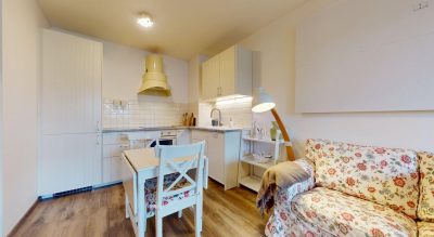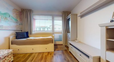 Tento komfortný byt o výmere 40 m² zaujme priestrannou izbou s prakticky riešeným kuchynským kútom, kde si vychutnáte varenie aj oddych. Veľká chodba s dvomi vstavanými skriňami poskytuje množstvo úložného priestoru na oblečenie, športové vybavenie či sezónne veci – všetko bude vždy upratané. Kúpeľňa je vybavená vaňou a WC, čo oceníte najmä po náročnom dni.
