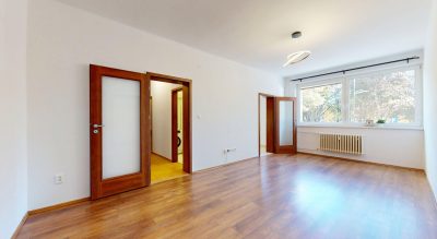 Tento dvojizbový byt vyniká svojimi parametrami a polohou v rámci svojej lokality. Jedná sa o solídnu tehlovú konštrukciu s vysokými stropmi (až 2,81m) a veľkoformátovými oknami, ktoré umocňujú jeho rozlohu. Jeho nadštandardná výmera- 62,57m2 sa prirodzene rozširuje ešte o zateplenú a zasklenú lodžiu (3.83m2), takže dokopy viete užívať až 66 m2. Je výborne riešený, s veľkým izbami (22 a 18,89m2), čo umožňuje zväčšenie na 2,5 izbovú dispozíciu, presunutím kuchyne do priestrannej obývačky.