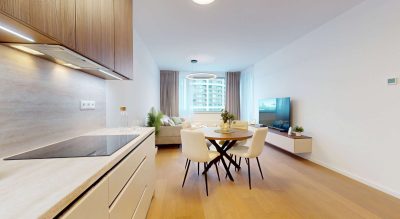 Ponúkame na prenájom exkluzívny 2-izbový byt v prestížnej novostavbe Sky Park 4 s rozlohou 57 m2, nachádzajúci sa na 13. poschodí. Tento čerstvo dokončený byt vás očarí nielen svojím nádherným výhľadom, ale aj kvalitným zariadením s nábytkom na mieru. Byt je dokonale pripravený na okamžité nasťahovanie. Dispozícia bytu je mimoriadne praktická a komfortná. Vstupná hala vás privedie do priestrannej obývacej izby, ktorá je vkusne prepojená s otvorenou kuchyňou. K dispozícii máte tiež spálňu, kúpeľňu a samostatné WC. Z obývacej izby a spálne vedie východ na lodžiu s výmerou 4,60 m², kde si môžete vychutnať pokoj a ticho s krásnym výhľadom. Dôležitou súčasťou prenájmu je aj podzemné parkovacie státie, ktoré zaručuje pohodlie a bezpečnosť vášho vozidla. Lokalita Starého mesta poskytuje vynikajúcu občiansku vybavenosť a skvelú dostupnosť. V pešej vzdialenosti nájdete obchodné centrá Nivy a Eurovea, čo zabezpečuje všetko, čo potrebujete pre váš komfortný život. Tento byt je ideálny pre tých, ktorí hľadajú pohodlné a moderné bývanie v srdci Bratislavy. Nezmeškajte túto jedinečnú príležitosť a dohodnite si obhliadku ešte dnes, pretože byt je voľný a k dispozícii ihneď.