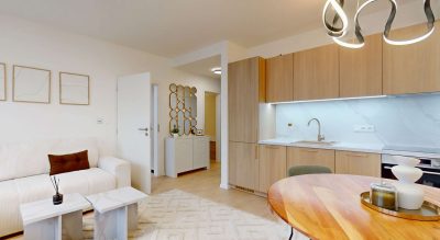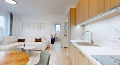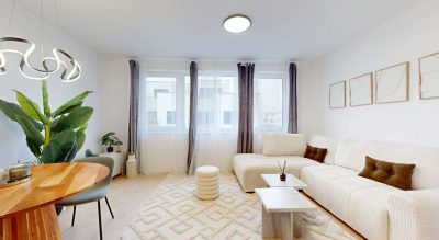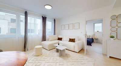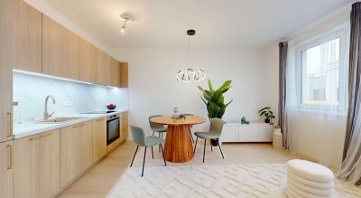 Ponúkame na prenájom moderný a veľmi príjemný 2-izbový byt v novostavbe na Mesačnej ulici v Hviezdoslavove. Byt sa nachádza na 1. poschodí, má výmeru 44 m² a disponuje aj priestrannou loggiou, na ktorú je vstup zo spálne. Dispozične pozostáva zo vstupnej chodby, kúpeľne s vaňou, kuchyne spojenej s obývačkou a spálne. Byt je svetlý, moderne zariadený a v každej izbe sa nachádza kvalitný nábytok robený na mieru. Veľkou výhodou je aj množstvo úložného priestoru – v spálni aj na chodbe sú priestranné roldor skrine, ktoré poskytujú dostatok odkladacieho priestoru. Byt sa prenajíma kompletne zariadený vrátane všetkých potrebných spotrebičov – nechýba ani umývačka riadu či práčka. K bytu patrí aj vlastné vonkajšie parkovacie státie, čo výrazne zvyšuje komfort bývania. Hviezdoslavov ponúka pokojné prostredie s výbornou dostupnosťou do Bratislavy – autom ste v centre približne za 20 minút, takže je ideálnou voľbou pre každého, kto chce mať mesto na dosah, no zároveň si užívať pokoj mimo ruchu.