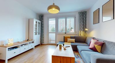 Byt sa nachádza v tichej lokalite v blízkosti lesa, vhodnej na prechádzky či športové aktivity. Zároveň má výbornú dostupnosť a kompletnú občiansku vybavenosť v pešej vzdialenosti – školy, obchody, detské ihrisko aj zastávky MHD.