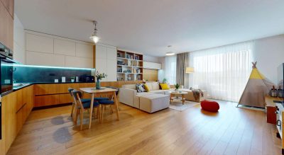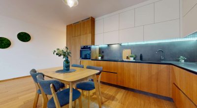 Interiér s rozlohou 82,91 m2 dopĺňajú dva veľkorysé balkóny s výmerami 10,26 m2 a 9,3 m2, ktoré prirodzene rozširujú obytný priestor a ponúkajú príjemné výhľady na okolie. Atmosféru domova definujú drevené parkety a precízne spracovaný vstavaný nábytok na mieru z kvalitného dreva, ktorý bytu dodáva pocit útulnosti a trvácnej hodnoty. K nehnuteľnosti prislúcha aj praktická pivnica s rozlohou 2,28 m2. Komfortné parkovanie pre dve autá je zabezpečené v podzemnej garáži, kde sú k dispozícii za príplatok dve státia v celkovej hodnote 70.000 EUR.
