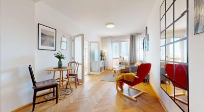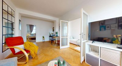 Byt má výmeru 65,7 m² a prešiel čiastočnou rekonštrukciou. Zachované pôvodné drevené parkety dodávajú interiéru jedinečný šarm a teplo domova. K bytu prislúcha aj balkón, praktická pivnica a spoločná kočikáreň.