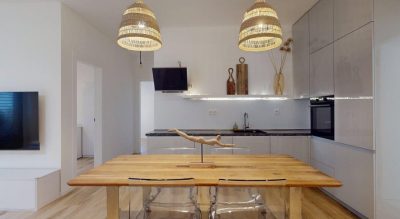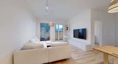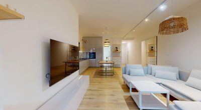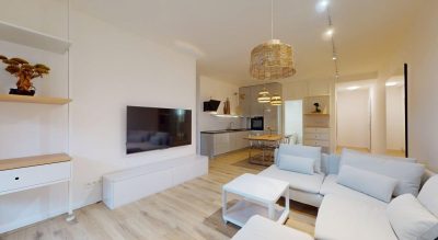 Byt má výmeru 77 m² a disponuje prislúchajúcou terasou o veľkosti 8 m². Pozostáva z troch kompletne zariadených izieb vrátane moderne vybavenej kuchyne so všetkými potrebnými spotrebičmi. Samozrejmosťou je podlahové kúrenie a stropné chladenie, ktoré zabezpečujú komfort počas celého roka.