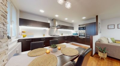 Tento byt na Tokajíckej ulici zaujme kombináciou, ktorú v panelákoch často nenájdeme – priestorom, svetlom a praktickosťou. Vďaka open-space konceptu kuchyne prepojenej s obývacou izbou a výmene klasických okien za francúzske, pôsobí interiér mimoriadne vzdušne a presvetlene, s príjemným pocitom otvorenosti.