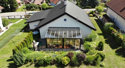 -dobudovaná je pekná a funkčná zimná záhrada, ktorá v lete zabezpečí komfort ako vo wellness a v zime udržuje tepelnú pohodu obytnej časti domu.