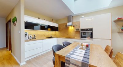 O váš maximálny tepelný komfort sa stará podlahové vykurovanie napojené na pomerne nový, moderný a úsporný kondenzačný kotol. Dom je navyše vybavený prvkami smart domácnosti vrátane elektrického ovládania strešných okien v kuchyni, čo dodáva bývaniu nádych futurizmu a praktickosti.