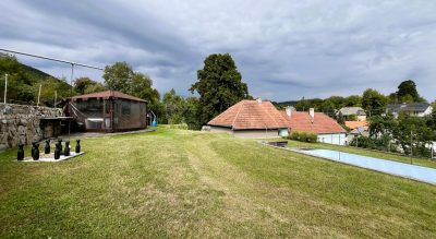 Bazén, kolky, altánok, multifunkčné ihrisko, spoločenská miestnosť, vínna pivnica, ale aj malá záhradka s ovocnými stromami, to všetko môžete okamžite využívať.