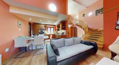 Srdcom chaty je priestranná obývačka s kuchyňou, praktickou komorou a krbom. Je to miesto, kde sa všetci stretnú, panuje tu čulá vrava a cítiť tu teplo domova. Ľahkosť a vzdušnosť priestoru dodáva nádherná otvorená galéria, ktorá plynule pokračuje na druhé poschodie. Tam na vás čaká luxusná kúpeľňa, spací kút a očarujúci priestor s balkónom. Výhľad z balkóna je famózny a upokojujúci. Môžete si tu vychutnať čaro prírody v ktorúkoľvek dennú či nočnú hodinu. Pod strechou vás prekvapí štýlová pracovňa, hlavná spálňa a menšia izba pre hostí s praktickým kumbálom na odloženie všetkého nevyhnutného.