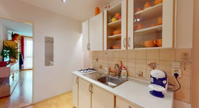 Kuchynka je riešená samostatne na chodbe a vybavená plynovým sporákom.