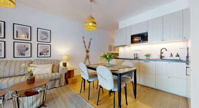Práve takýto 2-izbový apartmán pripravujeme do ponuky v projekte Villa Erdödy Resort v Oravskej Lesnej – priamo v lyžiarskom stredisku Orava Snow.