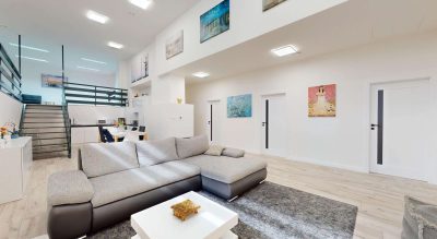 Zaujme vás svojím priestranným interiérom s výškou stropu až 4,4 m, moderným systémom rekuperácie, inteligentným vykurovaním ovládateľným cez aplikáciu či tichom, ktoré si musíte prísť vypočuť.