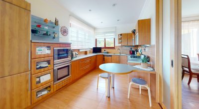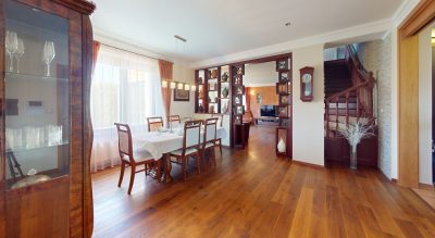 Postavený v roku 2009 z poctivých materiálov, vybavený plynovým kúrením, krbom a solárnym panelom, je pripravený slúžiť bez ďalších veľkých zásahov. Suterén ponúka dvojgaráž a technické miestnosti, nadzemné podlažia dennú a nočnú časť, doplnené o dve pracovne na najvyššom poschodí.