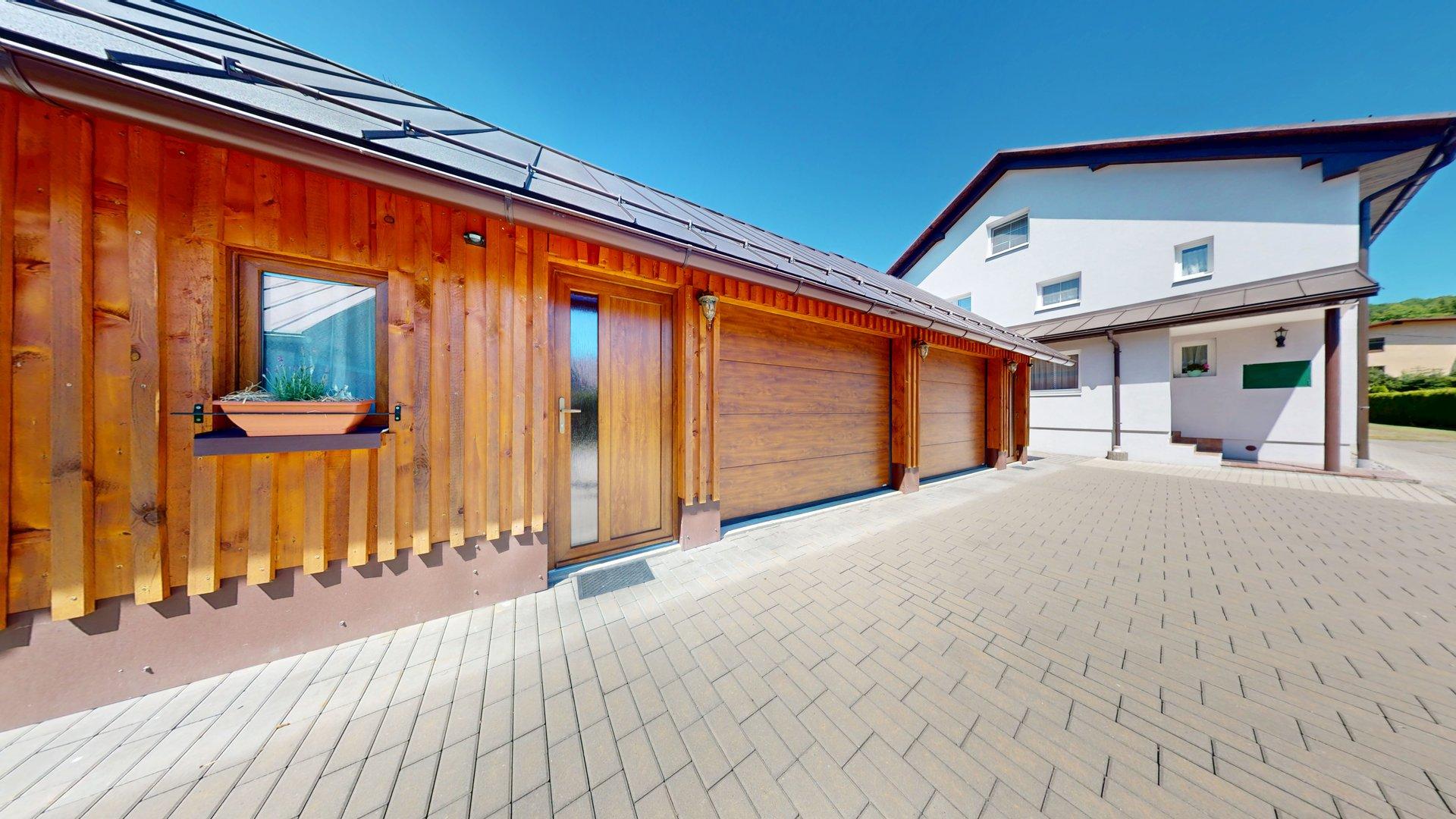 Pri dome, hneď za terasou je k dispozícii dvojgaráž s veľkou dielňou a skladom pre náradie. Za dvojgarážou je menšia záhrada s krásnym altánkom. Toto miesto s pocitom úplného súkromia je ako stvorené na príjemné posedenie a grilovanie.