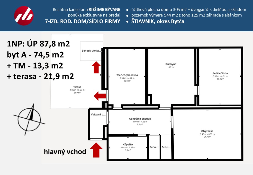 Dom je svojou polohou a dispozíciou vhodný buď pre veľkú rodinu, alebo menšiu firmu. Prípadne, ak aktuálne veľkú rodinu nemáte, môžete využiť časť domu na prenájom. Nehnuteľnosť je možné uvoľniť okamžite.