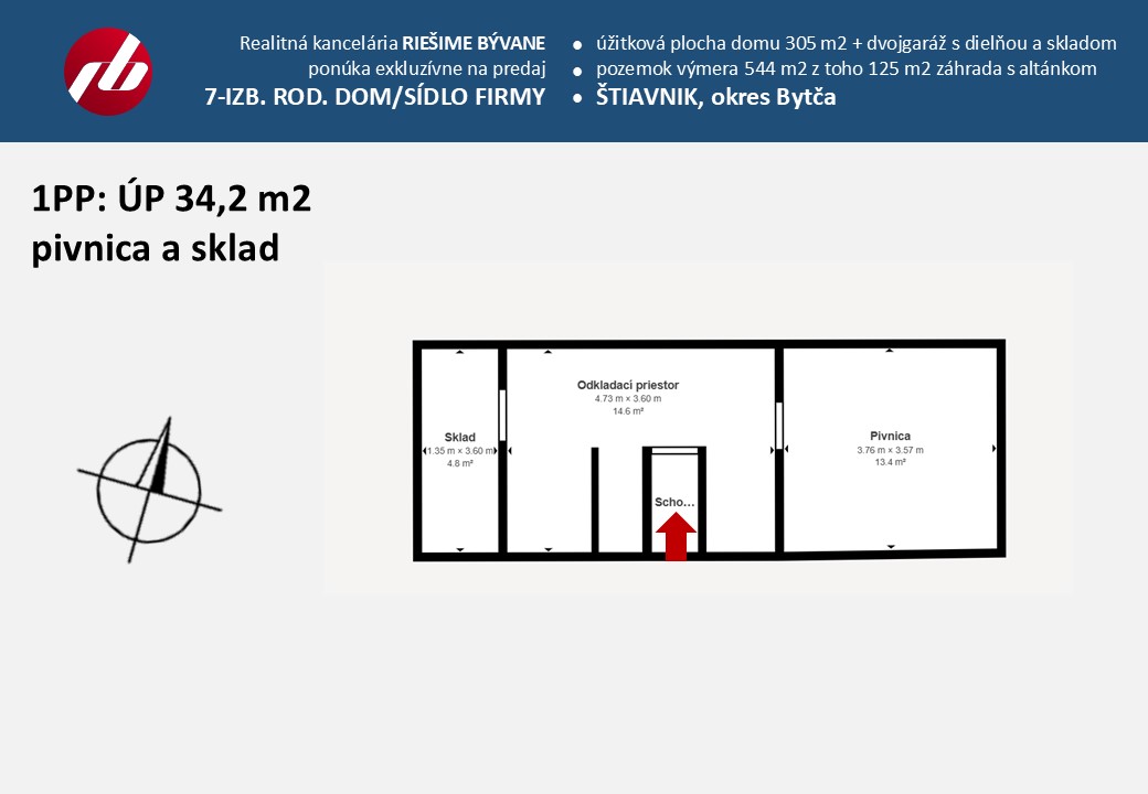 Dom: 305 m2 (vrátane suterénu 34,2 m2)