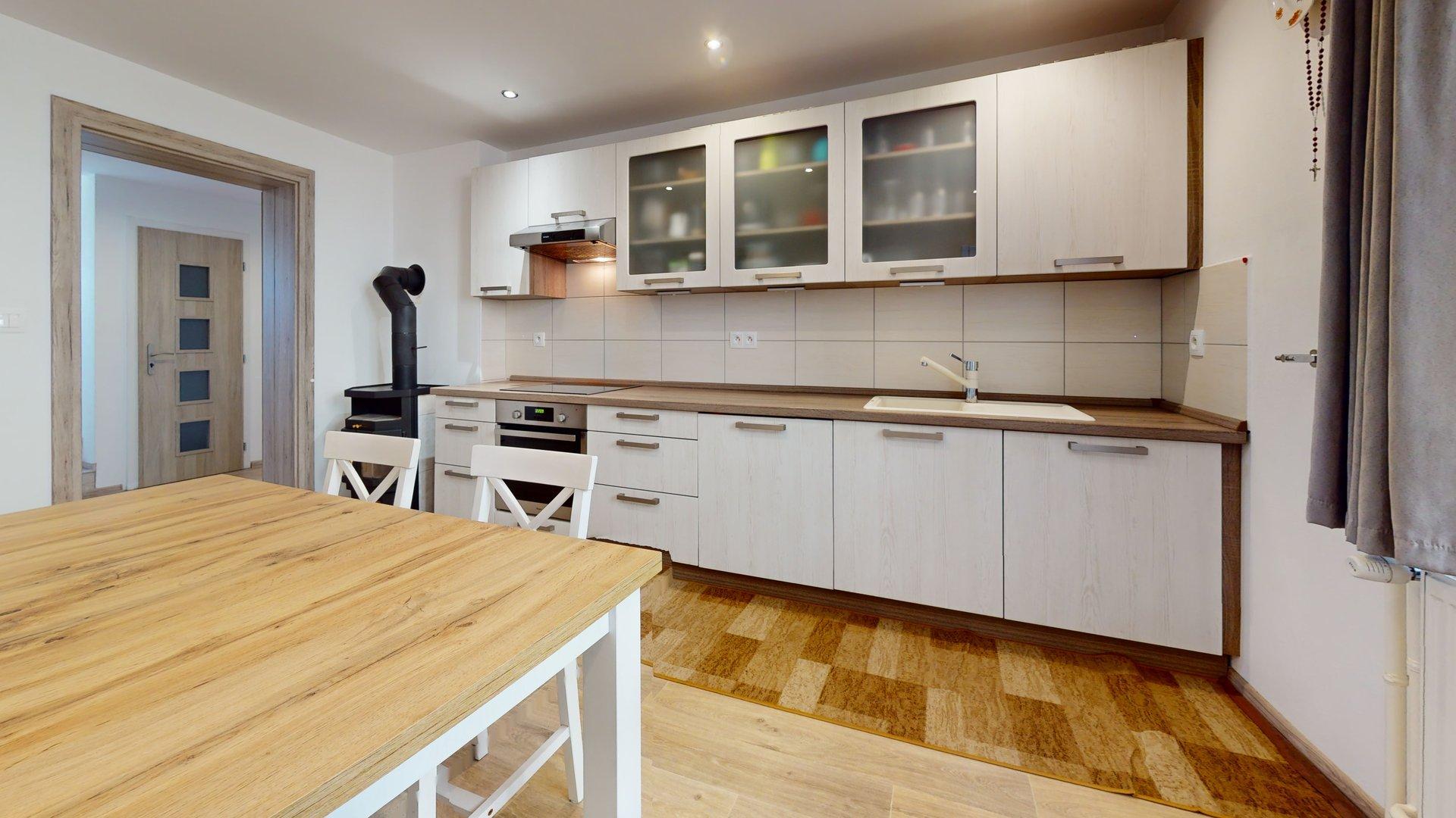 4-izbovú časť tvorí celé prízemie s dvomi izbami, kuchyňou a kúpeľňou a časť prvého poschodia s dvomi priestrannými spálňami. Na prízemí je aj technická miestnosť s práčovňou a vstup do suterénu/pivnice.